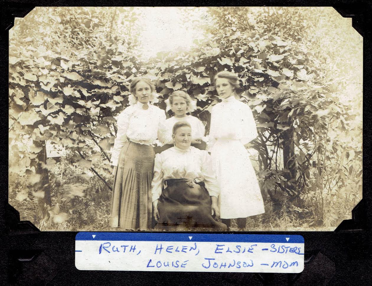 I have searched for a picture of my husband’s maternal Great Grandmother Lovisa “Louise” Carlson Johnson for years (pictured above with her three daughters). When a DNA match was discovered two years ago in August I sent an email asking if the match had a picture. He responded this year on Halloween that he didn’t think so but would check with another family member who had a box of unlabeled photos and would get back to me. I put it out of my mind as I wish I had a buck for every time a family member said, “I’ll check and get back with you.” My people procrastinate and they never seem to followup up unless I keep bothering them. I figured, with the holidays approaching and people getting busy, I’d wait til after Thanksgiving and send a gentle reminder.