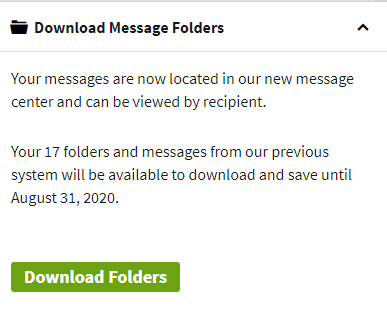 Click the green button “Download Folders” It doesn’t take long. Underneath the button your messages will be downloaded to your computer as a zip file: