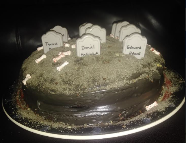 Minutes later, my kid brings over the cake pictured above. On each tombstone is one of the names I had supplied that are a brick wall. The chocolate pudding cake with cream cheese frosting was delicious. The “dirt” on top is crushed Nilla wafer cookies dyed with food coloring. Child had bought the cake mix at the start of the pandemic and said, “Let’s bury this thing and move on.” I agree!